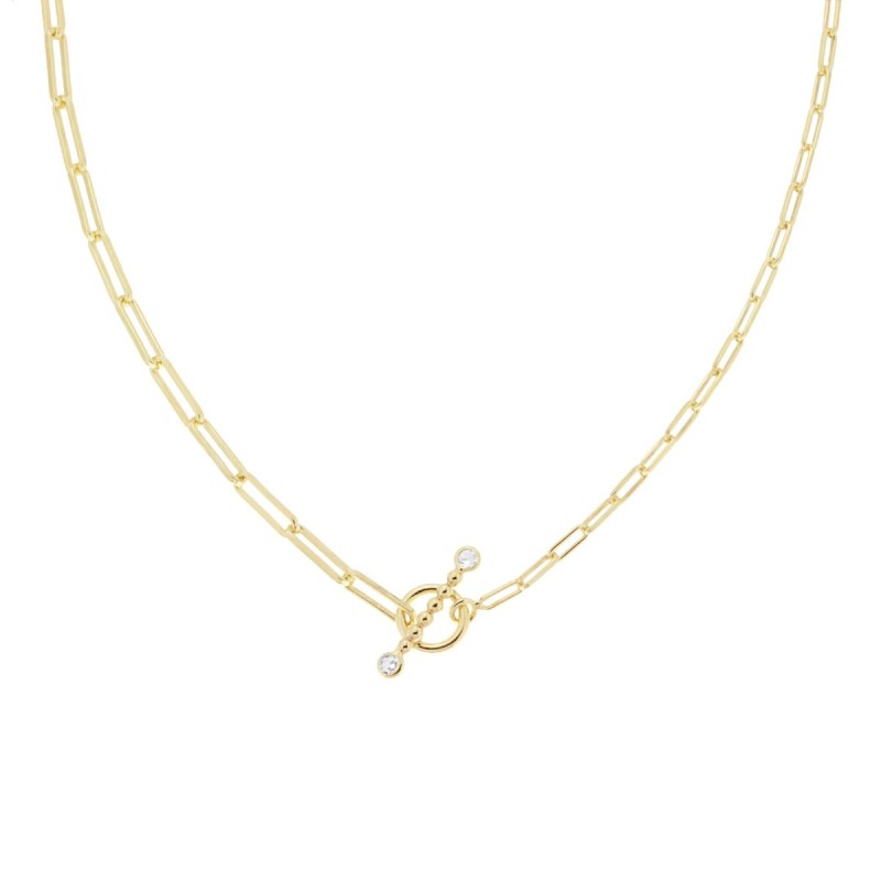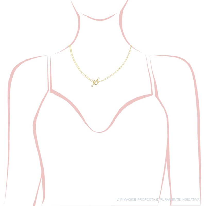 Collana Asimmetrica Catena Forzatina allungata con T-Bar con Cubic Zirconia Bianchi in ARGENTO 925 Galvanica Oro