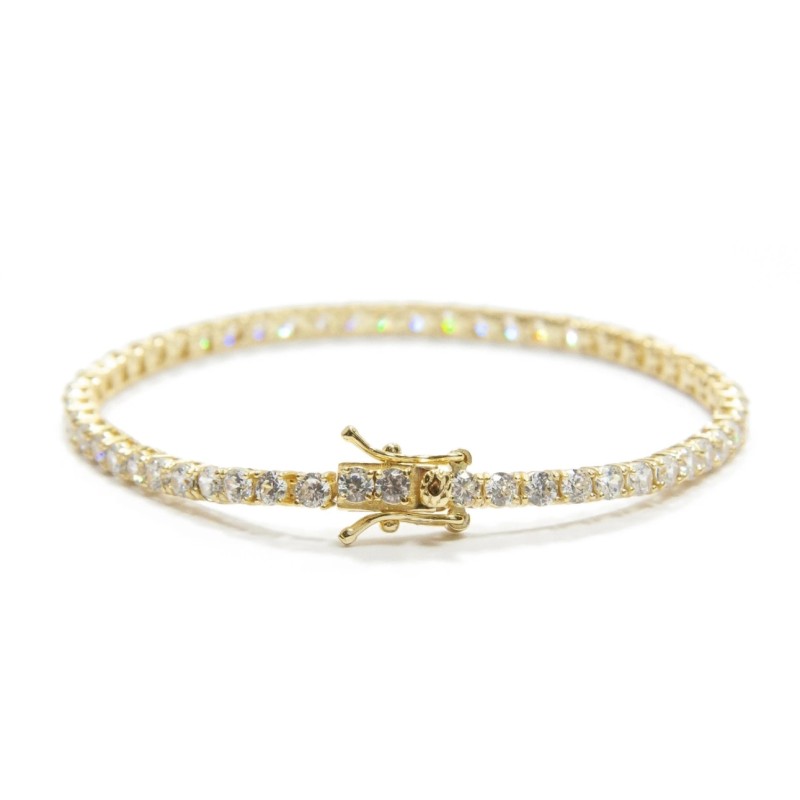 Bracciale Tennis Griffe cm 16,5 con Zirconi mm 3 Bianchi in ARGENTO 925 Galvanica Oro