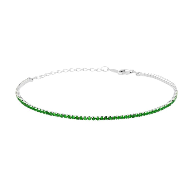 Bracciale Tennis cm 16+3 con Zirconi mm 1.5 Verde Smeraldo in ARGENTO 925 Galvanica Rodio
